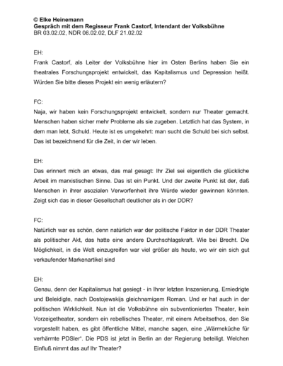 Gespräch mit dem Regisseur Frank Castorf, Intendant der Volksbühne