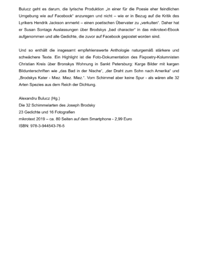 Über „Die 32 Schimmelarten des Joseph Brodsky: Gedichte und Fotos“ hg. von Alexandru Bulucz (mikrotext 2019)