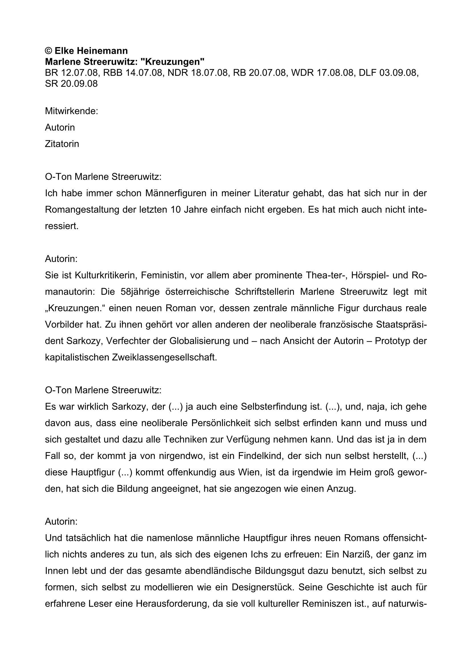 BR 12.07.08, RBB 14.07.08, NDR 18.07.08, RB 20.07.08, WDR 17.08.08, DLF 03.09.08, SR 20.09.08