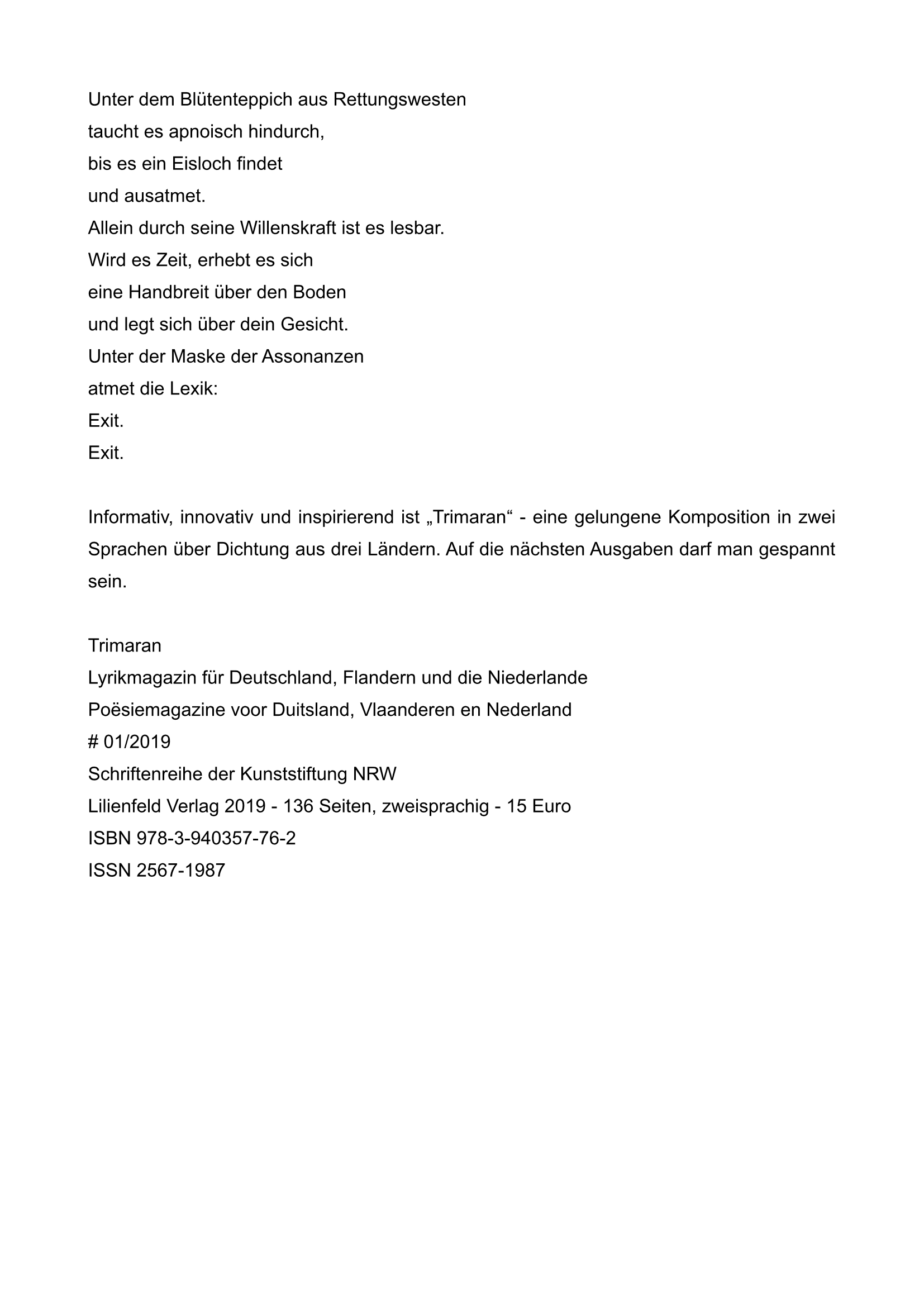 Ein Porträt des neuen Lyrikmagazins „Trimaran“ (Lilienfeld Verlag 2019)